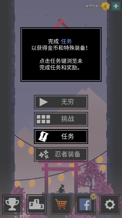 1、浮世绘式视觉呈现:忍者采用黑色剪影设计,背景融入樱花、月夜、纸灯笼等日式水墨画元素,搭配动态朝阳与星空,跑酷过程如同观赏浮世绘的动画。