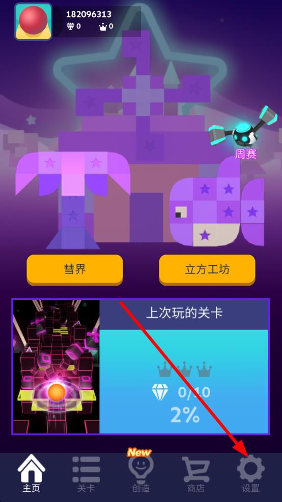 1、打开滚动的天空游戏,点击主界面右下角设置图标进入设置界面。