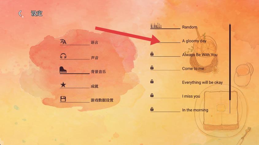 3、在设定界面,点击背景音乐选项。