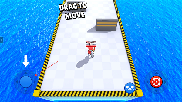 2、点击界面右侧的红色瞄准按钮,即可操控角色发射油漆,发射的油漆会覆盖地面与目标,需结合移动调整角度以提升覆盖效率。
