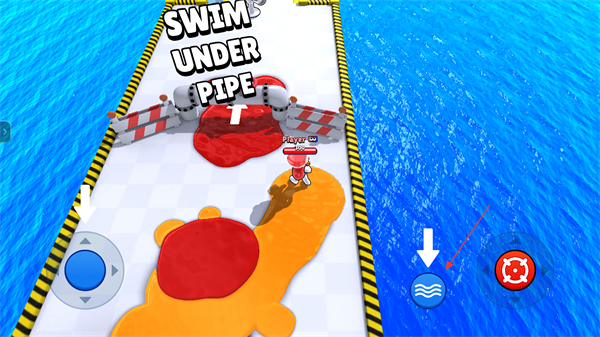 4、遇到管道类遮挡地形时,点击界面下方的游泳按钮,角色会进入水中从管道下方穿过,顺利通过障碍区域。