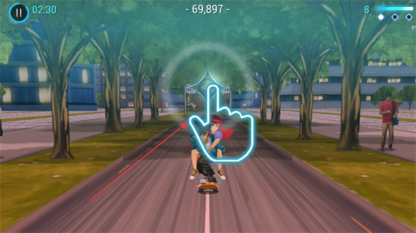 滑板操控与躲避操作逻辑简单,通过基础按键或滑动即可完成,新手也能快速适应,专注剧情与冒险。
