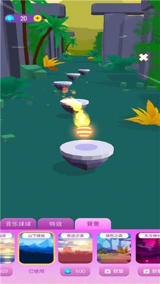 1、核心玩法考验节奏把控能力,需精准点击屏幕控制小球跳跃,踩准音乐节拍穿越音符阵列,连续精准操作可获得分数加成。