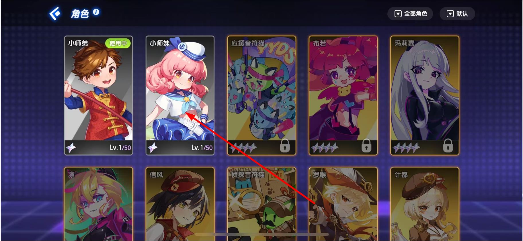 2.在角色展示界面中,浏览并选择想要更换的人物角色,点击该角色的卡片。