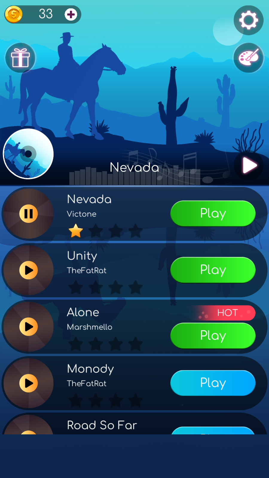 2、多样乐曲选择:涵盖流行、摇滚、爵士等多种风格的乐曲,每首乐曲对应专属关卡,从简单的入门曲目到复杂的高难度曲目,满足不同节奏偏好与操作水平的玩家需求。