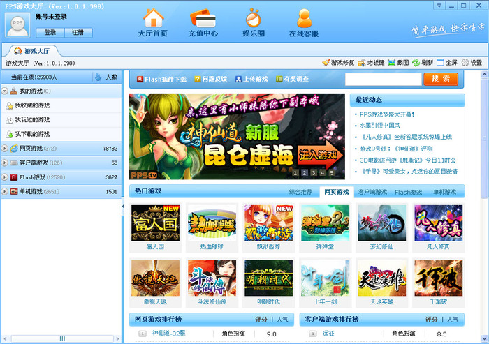 PPS游戏大厅具有小游戏资源及其丰富,PPS游戏集合各种时下新潮的FLASH免费小游戏,双人小游戏让你玩不够;另有更多好玩的单机游戏下载,PPS游戏纯绿色安装包无插件无毒;此外,它还提供新最酷较好玩的网页游戏大全。