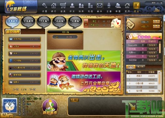 艺游休闲娱平台是一款以同城为基本理念,集游戏、视频、交友等多项功能为一体的大型都市休闲类娱乐游戏。新颖的比赛场、PK场和活动场功能,艺游休闲娱乐平台游戏界面更加精致,在流畅的界面中流动着质的美感。更为重要的是比以往的其他平台更加的稳定,使玩家在游戏中可以更加痛快的享受游戏带来的乐趣。