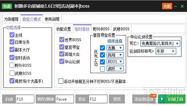 4、一键野外BOSS、武穆BOSS、竞技场。