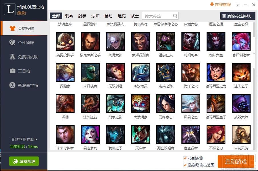2. 英雄换肤,支持所有英雄的皮肤修改功能,无限更换次数。