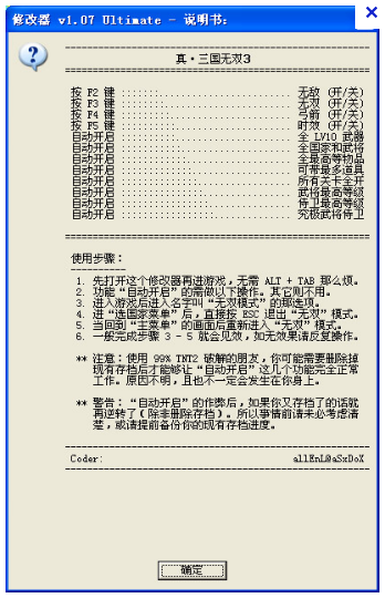 标签: 漏洞修改 游戏修改 1.07 修改器 真三国无双3