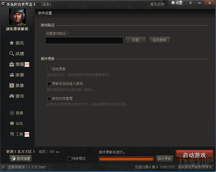 坦克世界盒子主要是让广大不会手动安装插件,涂装的玩家方便游戏开发的,多玩坦克世界盒子会覆盖掉游戏中的一些.swf文件。对于一些高端喜欢自己diy的玩家,可能会覆盖部分文件,不过第一次使用时,会主动帮大家备份文件到一个文件夹。