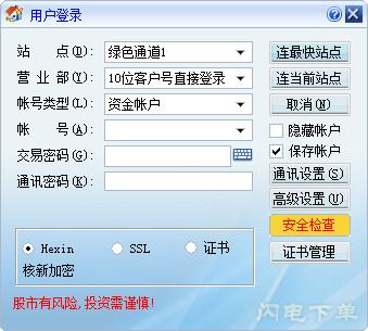 海通交易系统绿色通道版是一款股票操作分析工具。该款软件操作简单、功能齐全,适用于广大股民买卖股票、债券回购、退市整理以及修改资金账号密码等功能,帮助股民朋友更好的操作自己的股票,实现利益的最大化。如果你还在为找不到合适的股票软件而烦恼,就赶紧试试该款产品吧!