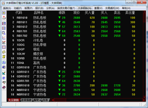 大宗钢铁行情分析系统为您设置了系统板块和用户板块,方便您迅速快捷的选定品种。