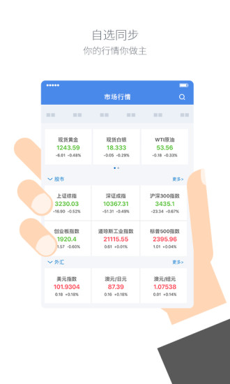 分类大宗商品、外汇、a股与期货等,加入自选快速关注行情数据。