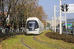 有轨电车是采用电力驱动并在轨道上行驶的轻型轨道交通车辆。有轨电车是一种公共交通工具,亦称路面电车,简称电车,属轻铁的一种,列车一般不超过五节,但由于在街道行驶,占用道路空间。