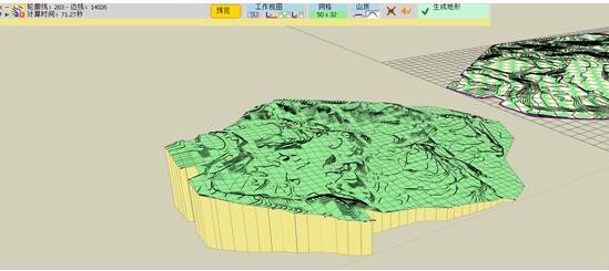 4、计算完成后 会生成虚拟地形 包括虚拟的基座 基座的底是以SU世界轴XY面为基准的