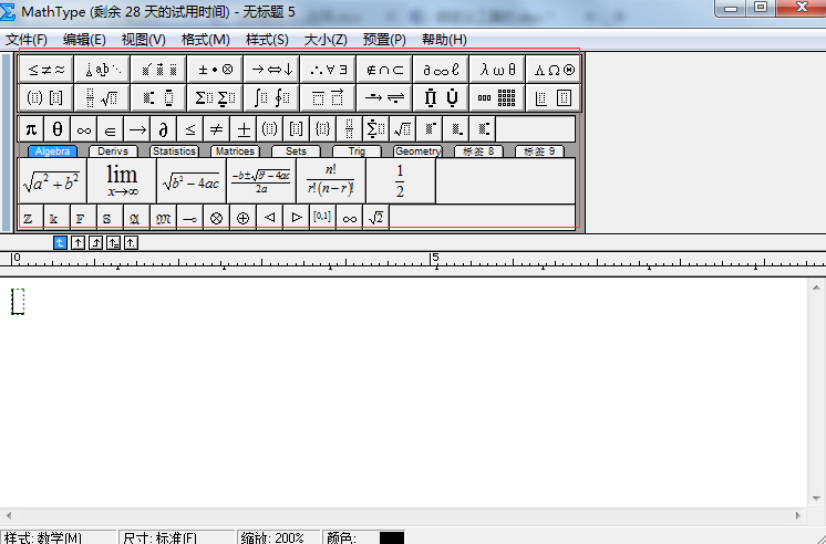 1.按照自己的使用习惯打开mathtype公式编辑器,进入到编辑公式的界面。
