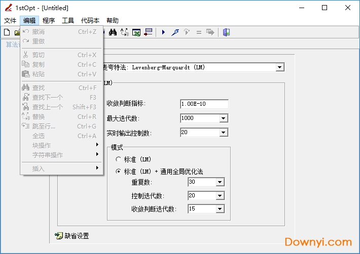 1、下载软件,点击1stopt15pro.exe启动,进入界面,显示优化算法 方式,可以选择算法参数设定,支持收敛判断指标