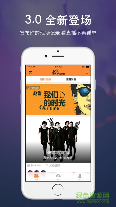 野马现场电脑版是一款演出赛事查看软件,这里汇集了音乐演出,国内外音乐人应有尽有,新鲜、热门演出第一时间知晓,全球零时差同步直播,还可以边看边互动哦,欢迎有需要的朋友到绿色资源网下载体验吧!