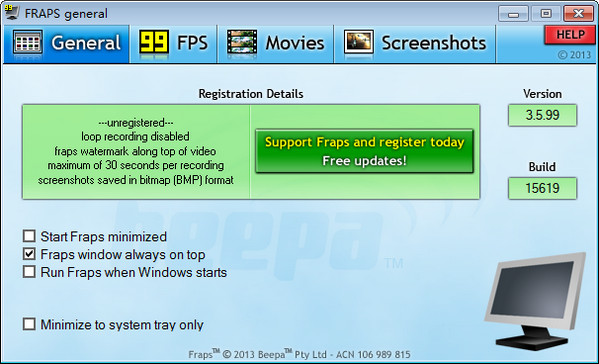 6.未注册的fraps只能录30秒的视频,录够30秒后会自动停止。