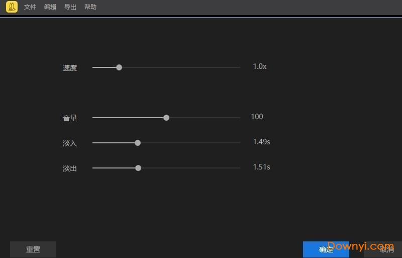 5、双击音频轨道上的音乐,在弹出的音频编辑框下,可以对音乐的播放速度、音量进行调整,同时还可以为音乐加入淡入淡出效果。