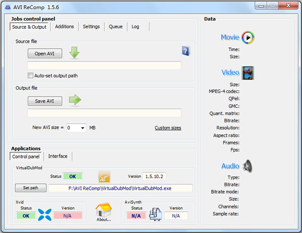 AVI ReComp是一款AVI压缩工具。支持带有音频或不带音频的avi文件。采用XviD编码进行视频压缩。可以用来清除 AVI视频中的GMC 或 Qpel功能,从而让视频可以在DVD播放器上正常播放。