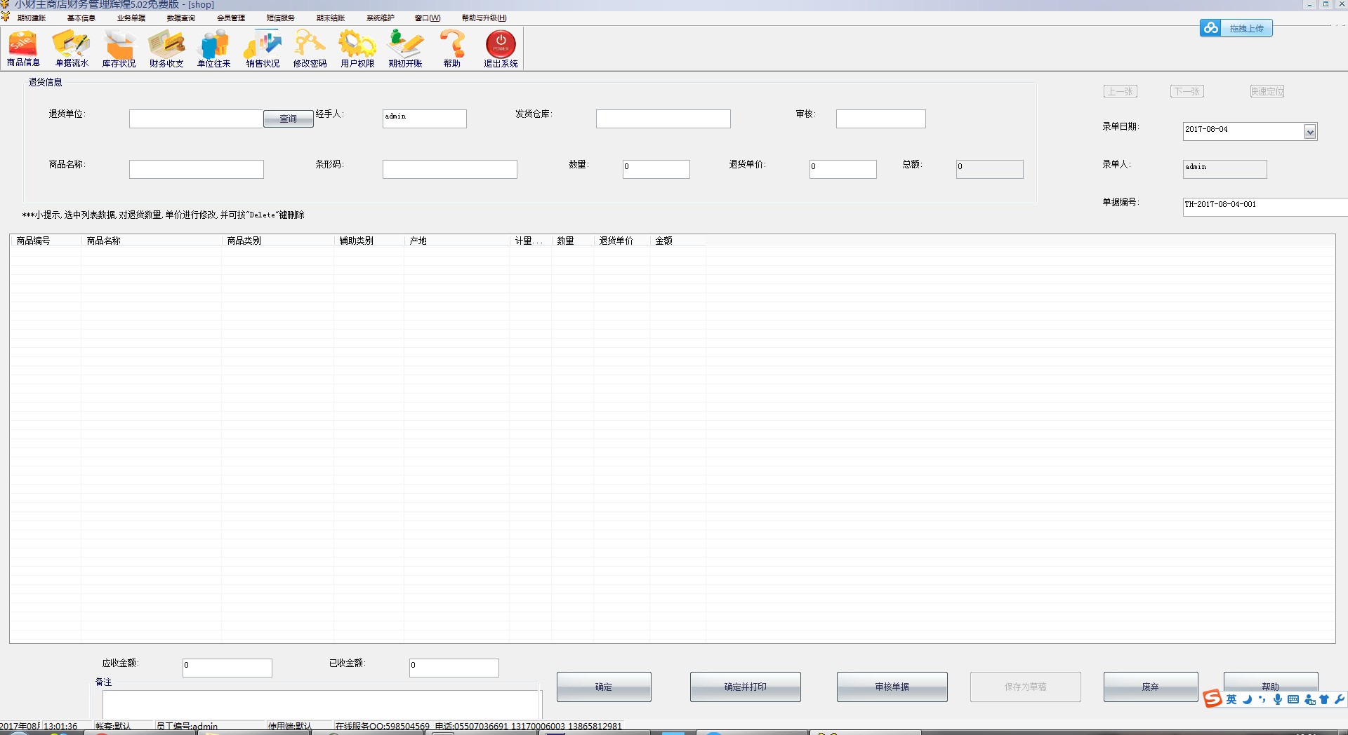 小财主商店管理系统免费版是目前市场上更为简单、实用的商店或商贸企业的进销存财务管理软件。免费版可以无限期使用,下载安装时直接下一步即可,默认的用户名和密码为:admin,请即时修改。