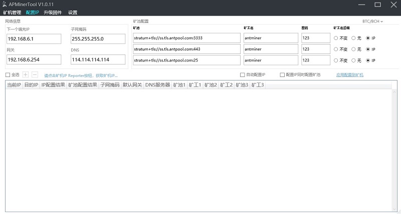 矿机正常连接网络和电源后,矿机设置时获取的 IP 都是 DHCP 模式,IP 地址不是固定的,如果机器多,为方便管理,批量管理软件可以批量进行设置固定 IP 地址;