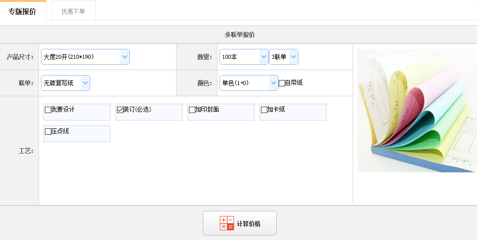 1、操作简单智能化操作界面,无需输入文字,简单勾选,眨眼完成任意复杂印刷品报价。