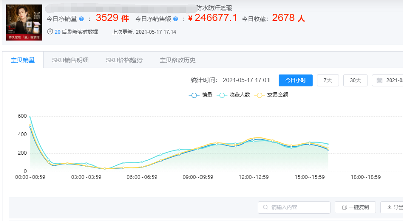 查询任意宝贝的今日付款人数;可实时查看竞争对手的销售情况
