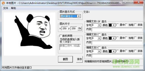 表情制作工厂是一款操作非常简单的表情制作软件,表情制作工厂只需将图片拖进软件中,就能帮助用户轻轻松松制作各种逗逼表情,世人笑我太疯癫,我笑他人看不穿呐~喜欢的朋友可以来绿色资源网下载。