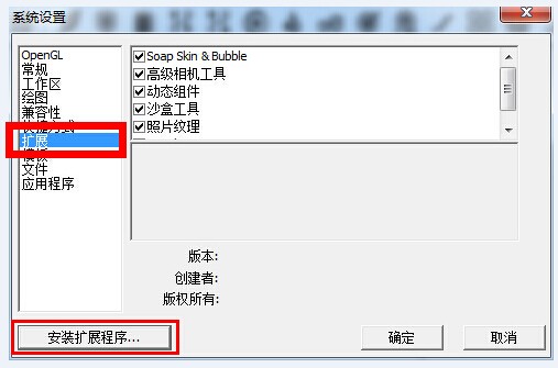 2、左边点选扩展,便会显示目前sketchup已安装的插件。