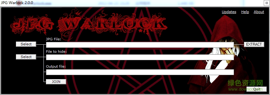 JPG文件隐藏(JPG Warlock)是一款非常有用的工具类型的软件,用户通过它可以将文件内的jpg格式的文件进行有需要的隐藏起来,同时该软件的操作也是十分的简单,欢迎前来下载使用!