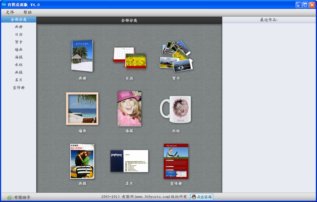 有图桌面版是一款傻瓜式相册制作软件,该系统目前支持照片书、婚纱影集、纪念册、画册、企业内刊台历、挂历、微博书个性化设计和制作,是一套傻瓜式的DIY创意软件。免费下载,具有一键排版,功能强大,制作简单。中国最流行的免费个性定制软件。支持离线制作;强大的布局库,背景库,边框库,装饰库。一键分享至所有社交圈,一站式订购纸质版和PDF版。
