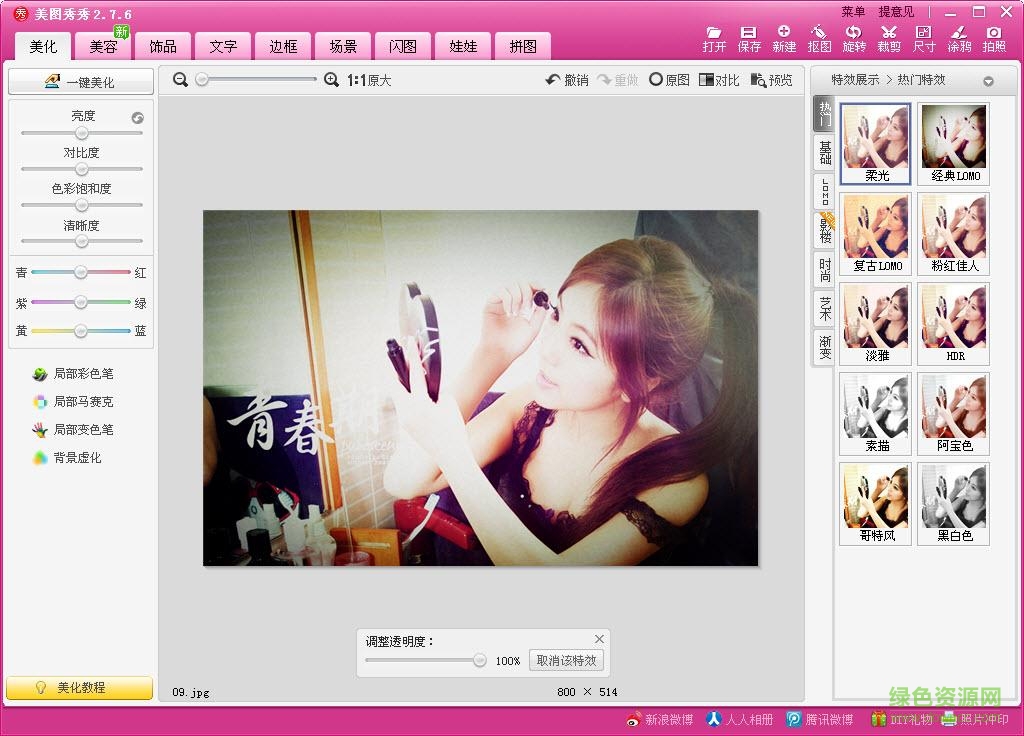 美图秀秀自带的海量饰品及多彩文字满足你不同时候的需求,创意无极限!