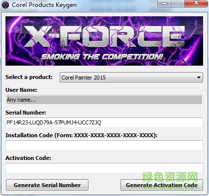 4、这里用corel painter 2015注册机生成相应的激活码激活即可;