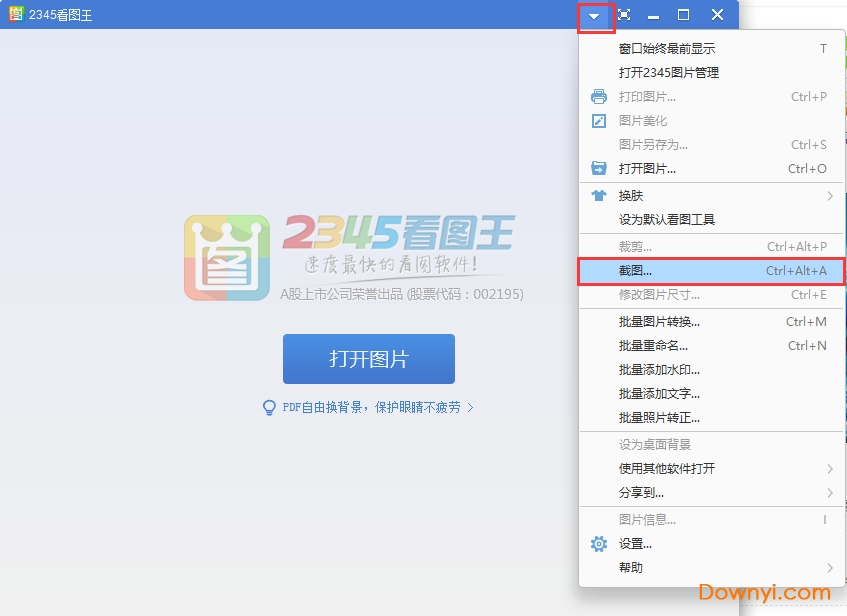 1、首先在本站下载安装好2345看图王软件后,软件就会自动运行打开进入主界面,在界面中间会有打开图片的选项,用户可以选择打开图片之后再找到截图选项或者直接使用截图功能。