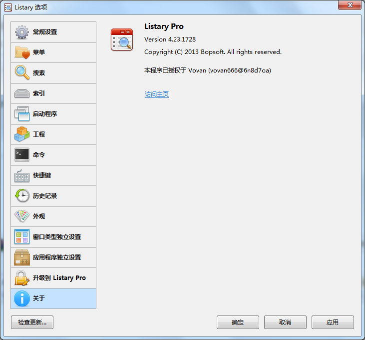 我们现在来注册激活Listary Pro,如图: