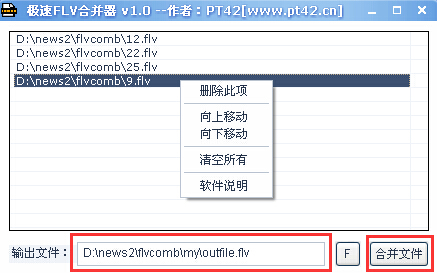 将多个flv文件连接合并为一个flv文件,不需要经过任何其他格式的转换,直接合并,速度极快。特别适合于处理从各视频网站下载下来的分段flv视频,十分方便,使用也极其简单,只要把需要合并的文件拖动到窗口中就可以了