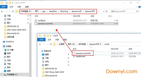 7、安装完成后将crack文件夹下的修改补丁复制到c:users(用户)username(用户名称)appdataoamingapowersoftapowerpdf"目录下即可修改。