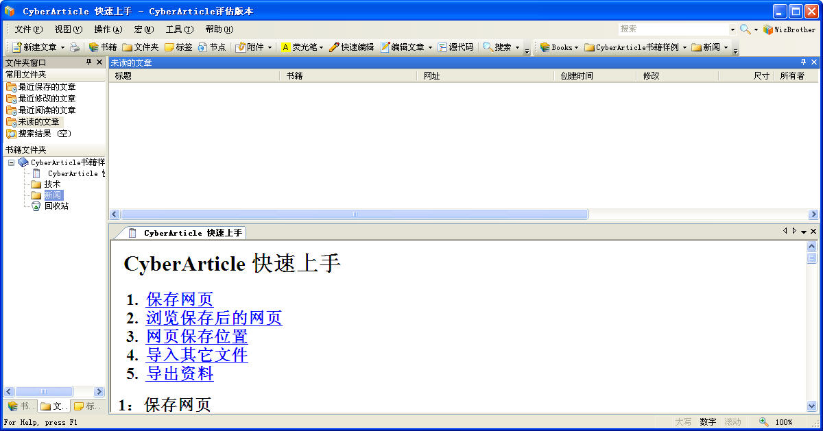 CyberArticle提供了多种编辑整理功能,可以让您对保存的资料,做进一步的修改和整理。