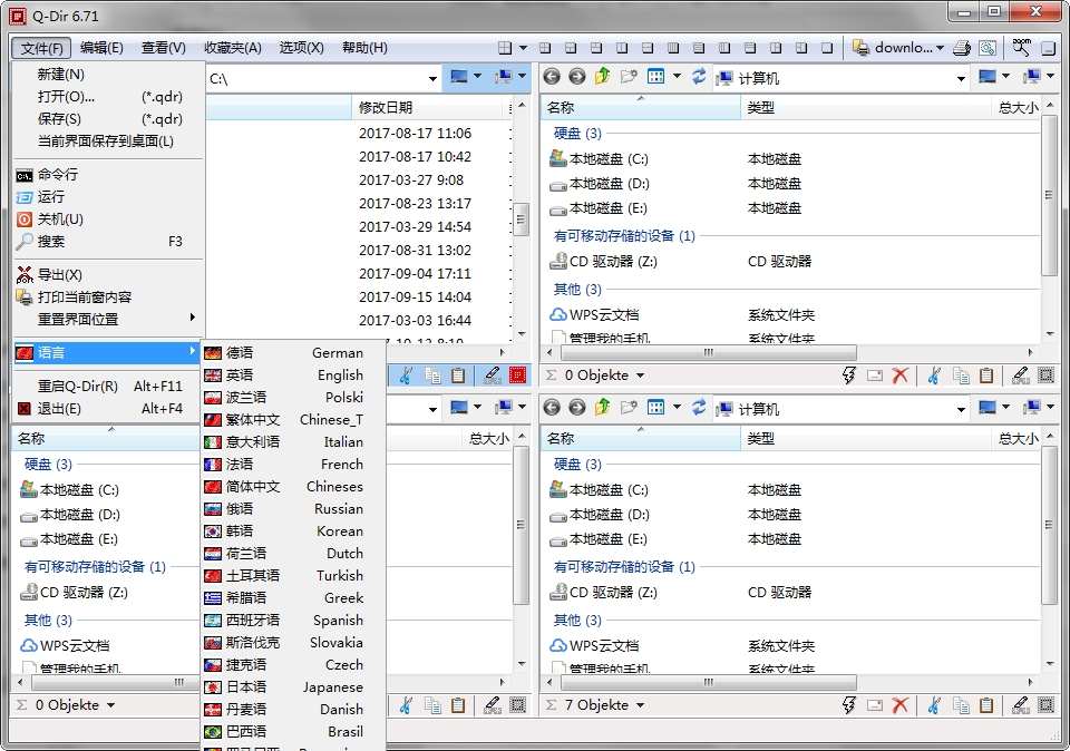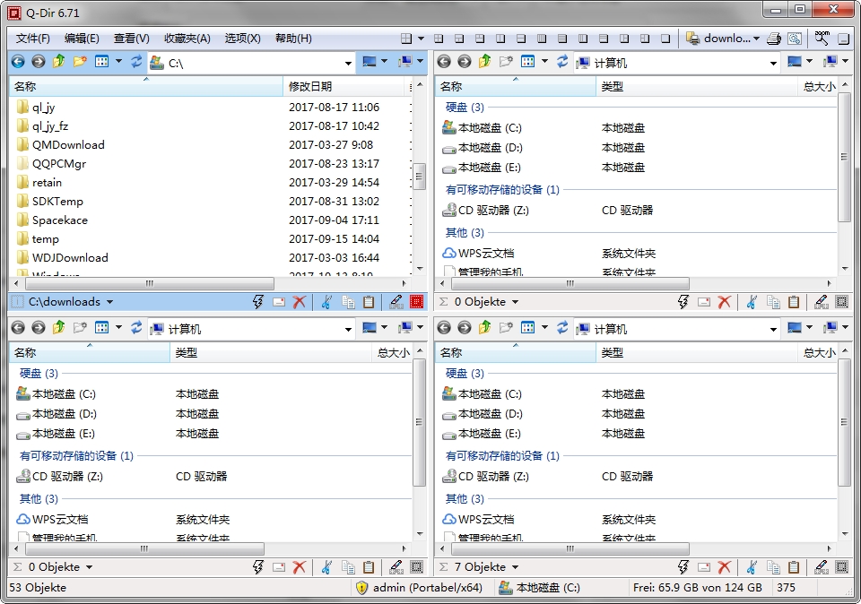 Q-Dir是一款独特、非常好用的资源管理器,特别适用于频繁在各个目录间跳跃复制粘贴的情况,因为,它有4个窗口!每个窗口都可以方便的切换目录,以不同颜色区分不同类型的文件,各窗口之间可以方便的拖放操作互相的文件。