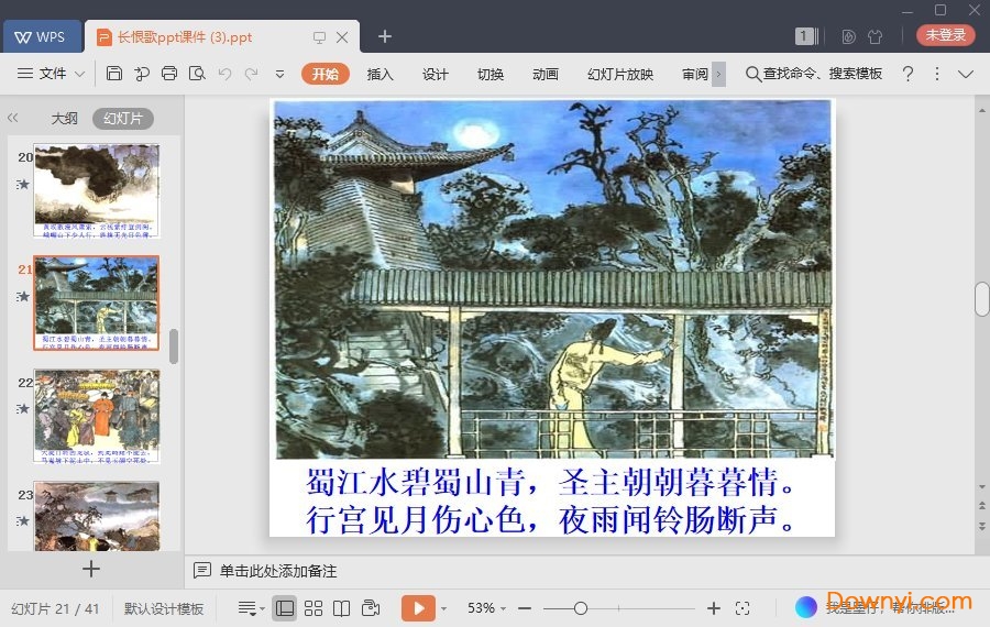 长恨歌ppt课件为你在学习这篇课文的时候提供了非常方便的教学资料。课件不止一个,其中一个是以漫画的形式来介绍每一句诗词所表达的场景内容。如果你想学习更多内容欢迎来体验!