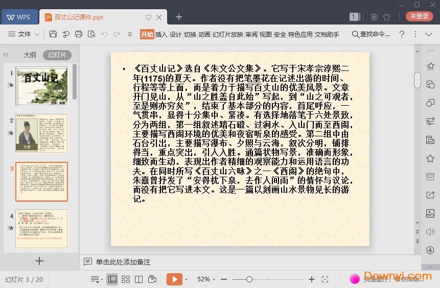 百丈山记ppt课件为你提供方便的教学体验,让你在使用这款ppt的时候可以更好的按照顺序教学。当然,同学们也可以通过这款ppt来预习或者是复习。如果你想好好学这篇古文,欢迎来体验课件!