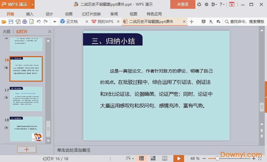 二战历史不容翻案ppt课件同学们总结了重要的驳斥论点以及钟声文章中的重要内容。课件中的对2012年“购岛”丑闻进行了一定的讲解,而且对于二战的历史是不容方案的!