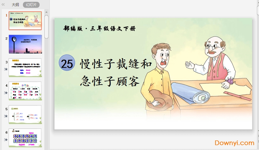 慢性子裁缝和急性子顾客三年级下册部编版ppt完美的将课文内容完整的阐述出来了,并且还加入了很多的思考问题,这样就能让学生有更深的思考空间了,激发他们的学习动力,很不错的。