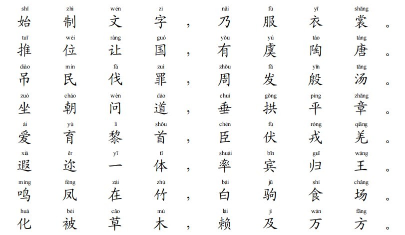 千字文全文注音版能够使那些还不识字的小用户们所提供,小编为用户们所提供的都将可以进行免费打印,全文的注音能够使大家更加轻松的便捷的阅读以及学习。