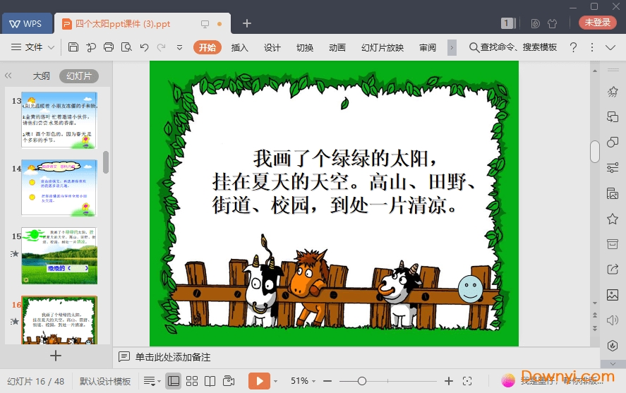 四个太阳ppt课件帮助同学们展开想象的翅膀。这篇课文就是作者通过小朋友的口吻来写的一片想象文章,让同学们在学习的时候不仅掌握了生字词,而且还有更多想象带给同学们!