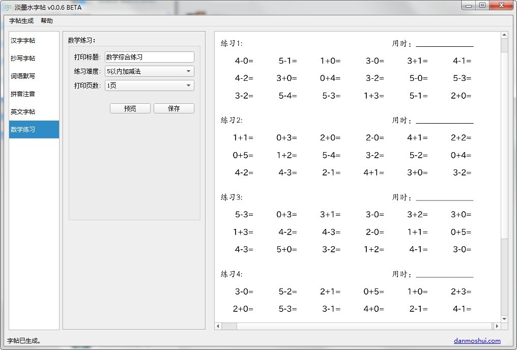 口算练习字帖生成。