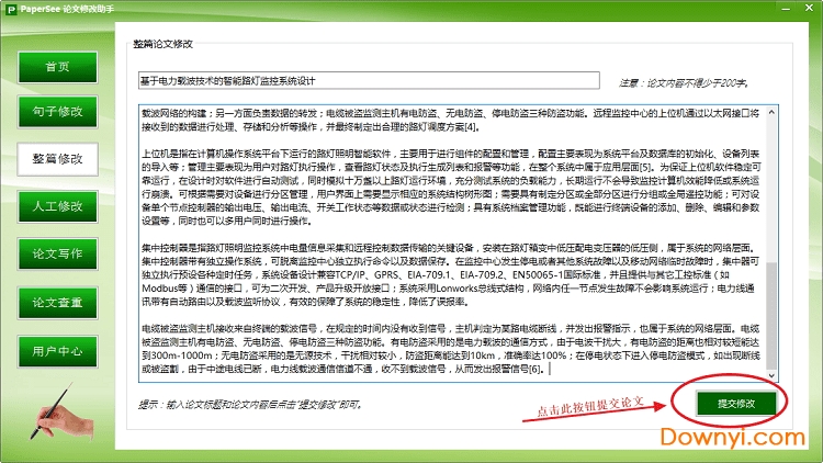 2.按照提示输入论文标题和论文内容,然后点击“提交修改”按钮。